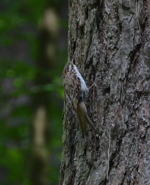 Mein schlaues Vogelbuch sagt, es gibt zwei Sorten von Baumläufern: den Gartenbaumläufer und den Waldbaumläufer. Okay, ich habe einen Garten im Wald, und ich habe keine Idee, wer mich da besuchen kommt! Insgesamt glaube ich allerdings, dass es nur eine Sorte gibt, denn die Unterscheidungsmerkmale sind minimal. Und die Angaben bei den „Schlaubergern“ unterscheiden sich. Der Schnabel des Gartenbaumläufers soll mal länger und mal kürzer sein als der des Waldbaumläufers (vielleicht, weil Wald- und Gartenbäume unterschiedlich dicke Rinden haben?), die Farbe sei weniger auffällig, also weniger weiß am Bauch (Tarnung ist im Garten vielleicht wichtiger) und der Gesang ist anders (das kann Zufall sein, Vögel sind gesanglich flexibel). Dann gibt es noch Unterschiede in der Beinstellung und der Färbung der Endfedern. Ich habe eine Stunde meine Bilder verglichen und möchte fast sagen, dass ich beide Sorten abgelichtet habe. Aber ich bin nicht sicher, darum stelle ich den Baumläufer nur auf einer Seite vor.
