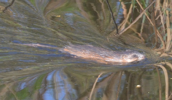Um es vorweg zu nehmen: ich konnte nicht! Es gab drei Tiere, die meinem Überraschungs-Schnappschuss ähnelten: den Biber, die Nutria und die Bisamratte. Von Ersterem wusste ich einiges, von Letzteren so gut wie nichts, außer, dass sie dem Biber ähnlich sehen. Ich weiß, dass es Biber in unserer Region gibt, denn das Naturzentrum bietet Führungen an, bei denen man im Naturpark auf sonst gesperrten Wegen die Tiere entdecken kann. Aber Biber bauen ziemlich charakteristische Burgen, die auch für Laien unschwer zu erkennen sind. Natürlich ist die Naturschutz-Region rund ums Fließ gewaltig, und man kann nicht mal einen kleinen Prozentanteil davon begehen oder einsehen. Aber von einer Biberpopulation hatte ich damals noch nichts gehört, und eine Biberburg hatte ich noch nicht entdeckt. Blieben also Nutria (die ich, aus welchen Gründen auch immer, damals ausschloss) und die Bisamratte. Sie unterscheidet sich vom Biber durch den Schwanz, der schmal ist (auf dem Bild nicht eindeutig zu erkennen), die Größe (schwierig, wenn kein Biber daneben schwimmt) und die Schwimmhäute zwischen den Zehen (nicht sicher auszumachen bei Fotos, auf denen die Pfoten unter Wasser sind). Trotzdem hielt ich die Bisamratte für wahrscheinlicher, weil ich auch am gesamten Fließ noch keine „Biberspuren“ in Form von angenagten Bäumen gesichtet hatte. Die habe ich sogar in Wien an der Donau schon gesehen. Außerdem sollen Bisamratten weniger sensibel sein, was das Ökosystem angeht, und weit verbreitet. Also präsentierte ich auf meiner alten Homepage die Bisamratte und war sogar ein bisschen stolz, dass ich ein halbwegs verwertbares Foto machen konnte.