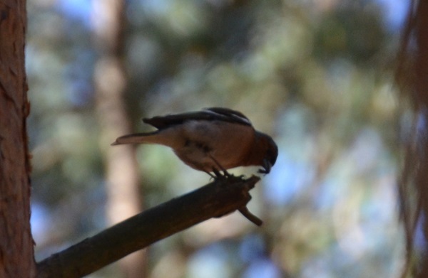 Immer wieder fällt mir auf, dass Vögel in der Wildnis sehr viel scheuer sind als in besiedelten Gebieten. In meinem Garten (nicht nur am Futterhaus) ertragen viele Piepser meine Anwesenheit (von den frechen Spatzen in den Städten will ich gar nicht erst anfangen). Zum Beweis gibt es auf den Homepage-Seiten der Meisen und Finken reichlich brillante Fotos, denn die Objekte sind nicht weit weg. Doch schon wenige 100 m weiter an der großen Wiese sind z.B. die Finken sehr empfindlich und nehmen Reißaus, wenn ich am Horizont auftauche (bildlich gesprochen). Darum wunderte ich mich Anfang März sehr, dass ein einzelner Vogel nur wenige Meter vor mir über den Weg flog und am Waldrand landete. Er war so nah, dass ich ihn auch ohne Brille sofort als Buchfink identifizierte. Er wirkte aufgeplustert und hüpfte nur ein bisschen. Ab und zu schüttelte er sich. Leider herrschte düsteres Tageslicht, so dass die Bilder trotz der Nähe nicht scharf wurden. Ich tippte vom Verhalten auf ein krankes Tier. Am PC zuhause sah ich dann ein paar „Pickel“ am Schnabelansatz. Natürlich bemühte ich das allwissende Internet, und man kommt schnell auf eine Seite mit Vogelkrankheiten (und scharfen Bildern). Aber schon bald wollte ich nicht mehr wissen, woran der Vogel gelitten hat. Dazu schreibe ich mal ausführlich was bei meinen „Texten“. Trotzdem möchte ich dem armen Kerlchen hier ein Denkmal setzen, falls er sich nicht wieder erholt.