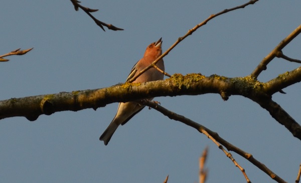 Der Buchfink singt jetzt im März 2019 regelmäßig sehr schön, aber eine typische Melodie kann ich immer noch nicht raus hören. Dafür habe ich ein paar nette Bilder gemacht, auf denen sichtbar wird, dass auch dieser Balzer sein Kehl-Gefieder aufplustert.