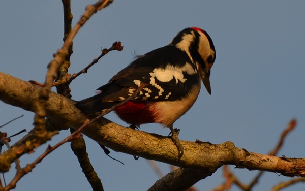 Ohne mein Vogelbuch wäre ich davon ausgegangen, dass es nur eine Sorte Buntspechte gibt. Aber es gibt mindestens 4. Zwei Sorten sind groß und unterscheiden sich durch die Nackenzeichnung, dann gibt es noch einen mittleren und einen kleinen. Was sie alle gemeinsam haben: sie sind schwarzweiß, haben einen roten Fleck auf dem Kopf und picken an Baumstämmen, wodurch man sie immer hört, auch wenn man sie nicht sieht.
