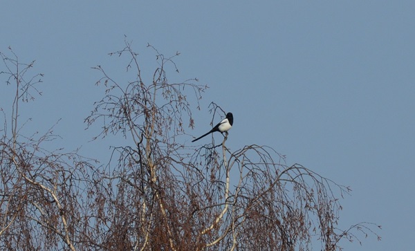 So wie der Fuchs für Schlauheit steht und der Bär für Gelassenheit wird der Elster gerne der Diebstahl angehängt. Es gibt sogar eine Oper von Rossini mit diesem Vorwurf (Die diebische Elster -La grazza ladra). Hintergrund ist, dass in den Nestern von Elstern immer wieder Schmuck gefunden wurde. Angeblich wird der Vogel durch das Glitzern dazu bewegt, die Kostbarkeiten zu entwenden. Grundsätzlich kann das natürlich eine wahre Legende sein, aber ich habe in der heutigen Zeit so meine Zweifel. Um Schmuck zu klauen, muss eine Elster sich in die Nähe von Menschen begeben. Und die Elstern in unserer Region gehören zu den scheusten Vögeln überhaupt. Ich finde sie farblich sehr attraktiv und hätte gerne ein paar schärfere Fotos. Doch in dem Moment, wo ich eine Elster sehe (und sei sie noch so weit weg), sieht sie mich auch und fliegt davon. Darum ist meine Fotoauswahl begrenzt.
