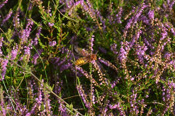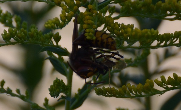 Die Hornisse hat eine Schwanzfärbung ähnlich der Wespe, aber sie ist deutlich größer und fällt durch ihr lautes Summen auf. Das wirkt bedrohlich, aber die Hornisse ist nicht aufdringlich. Lange dachte ich, sie wäre ein Aasfresser, denn sie geht auch nicht an Süßwaren, wenn denn wirklich mal welche in unserem Garten zu finden sind. Aber ganz so harmlos ist sie dann doch nicht. Sie fängt und tötet Schmetterlinge, trennt dann deren hübsche Flügel ab, um den Rumpf zu verspeisen (oder an die Nachkommen zu verfüttern, das weiß ich nicht). Habe ich gesehen und fotografiert, aber irgendwie widerstrebt es mir, so grausame Bilder vorzustellen.