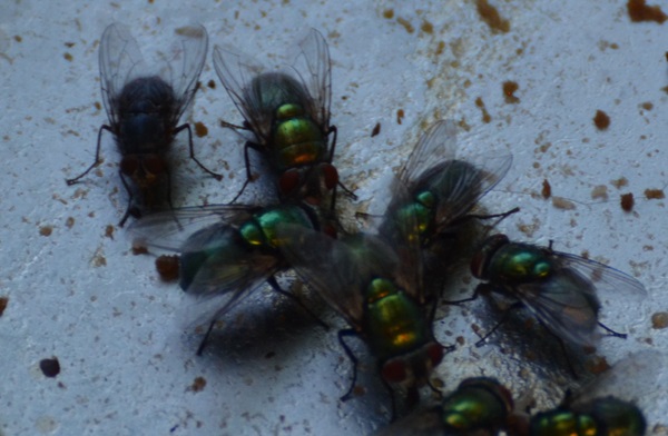 Sie ist die größte und, wie ich finde, gruseligste der normalen Fliegen. Ihre Zeichnung ist grauschwarz-längsgestreift, und sie hat leuchtend rote Augen. Auch sie kommt selten in mein Heim. Wahrscheinlich, weil keine schmackhaften Exkremente rumliegen.