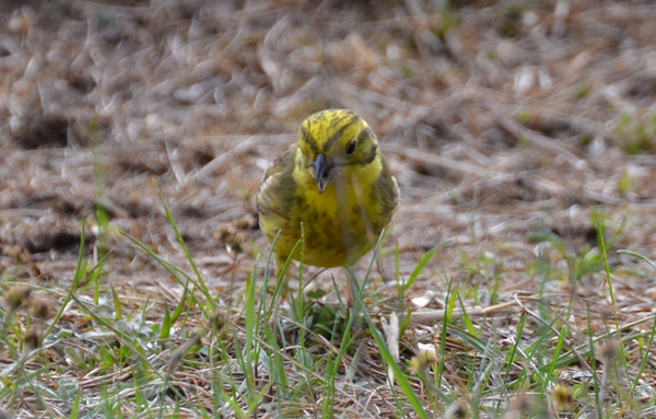 Meine hübsche Goldammer! Immer wieder für besondere Fotos zu haben! Hier habe ich sie im April abgelichtet, wie sie offensichtlich Nestmaterial zusammenträgt. An der Menge ist zuerkennen, dass sie ungern Wege doppelt macht.