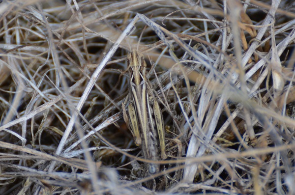 Die folgende Heuschrecke hat mein Hund verscheucht, bevor ich ein besseres Bild machen konnte. Sie war ziemlich klein und ähnelte keiner der Arten, die ich bisher bestimmen konnte. Darum stelle ich sie als „unbekannten Neuling“ vor.