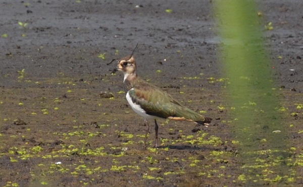 Der Kiebitz hat sich am Fließ leider eine ganz blöde Stelle für seine Boden-Aktivitäten ausgesucht. An dem kleineren See nordöstlich des Beobachtungsturms gibt es einen Uferbereich, der wirklich nur vom Turm einzusehen ist. Und ohne ein hochentwickeltes Teleobjektiv bekommt man auf diese Entfernung keinen Vogel scharf. So konnte ich auf meinen Fotos zwar erkennen, dass es Kiebitze gab, aber für meine Homepage taugten die Bilder nicht. Im Mai wurde ich Zeuge, wie diese Vögel ihr Revier gegen Schwarzmilane verteidigen mussten. Daraus schloss ich, dass sie dort brüteten.