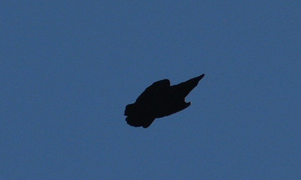Zu Hause freute ich mich dann auch mehr auf die Rehfotos, als auf den Vogel, denn von meinen Bussarden hatte ich schon tolle Fotos im Sonnenlicht und aus nächster Nähe. Aber ich wunderte mich dann doch, dass der große Vogel eine Krähe gewesen sein sollte. Mit der Zeit bekommt man ein Gefühl für die Größe eines Vogels, auch wenn er weit entfernt durch die Lüfte schwebt. Und meine vertrauten Nebelkrähen hätte ich niemals mit meinen Bussarden verwechselt! Zudem war auf einigen Fotos der Schwanz auffällig trapezförmig. Das konnte keine Rabenkrähe sein!