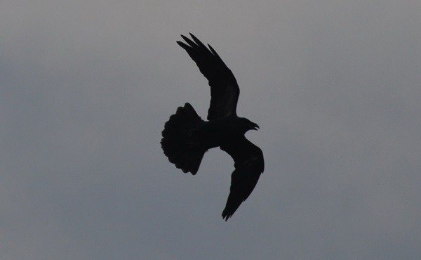 Auf mein schlaues Vogelbuch war nicht unbedingt Verlass, denn der markante Schwanz wurde zwar dem Kolkraben zugeordnet, dass dazugehörige Bild war aber irreführend. Also musste mal wieder das Internet herhalten. Und die Bilder des Kolkraben waren überzeugend, obwohl ich auch mal anmerken muss, dass unter der Rubrik „Kolkrabe“ Bilder von Nebelkrähen und Rabenkrähen auftauchten.