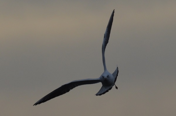 So kann ich neben einigen Starfotos auch eine Lachmöwe vorstellen, der bei der Nahrungssuche erfolgreich war. Wie ich es vom Fischadler kenne, zog der Vogel erst mal ein paar Kreise und flog dabei auch an seinen Verwandten vorbei. „Seht´ mal her! Ich habe einen!“. Erst dann ließ er sich auf dem Wasser nieder und würgte seine Beute herunter.
