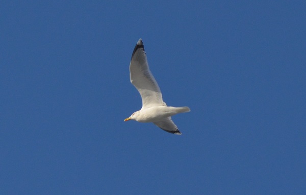 Zu Hause war ich etwas verwirrt, denn die bei uns heimische Sturmmöwe hat im Winter ein bräunlich gefärbtes Gefieder (Ruhekleid). Darum sah ich sicherheitshalber in meinem schlauen Vogelbuch nach. Und dort stand auch: die Sturmmöwe hat keinen roten Schnabelfleck. Den hatte mein neues „unbekanntes Flugobjekt“ aber unzweifelhaft.