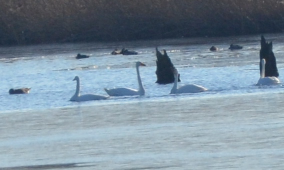 An einem milden Tag Mitte Dezember 2019 besuchte ich mal wieder das Pfefferfließ. Auf dem See westlich vom Fließ sah ich durch die Bäume eine kleine Gruppe Schwäne, die ich sofort als Singschwäne identifizierte, weil sie ihre Hälse so grade in die Höhe reckten.