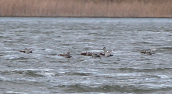 Typisch für Tafelenten ist übrigens auch, dass sie „tief im Wasser liegen“. Entdeckt man irgendwo eine Wasservogelgruppe, von der eigentlich nur die Hälse und Köpfe sichtbar sind, dann sind es entweder Kormorane oder Tafelenten.