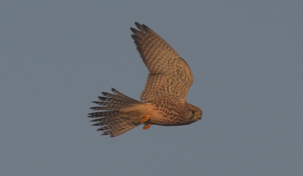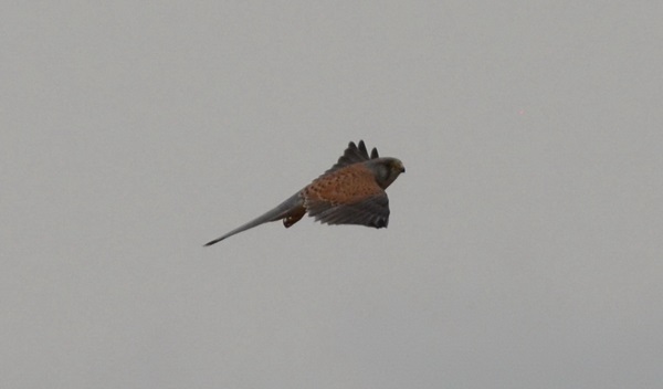 Schon vor Jahren habe ich gelegentlich mal einen Falken über unsere Wiesen fliegen sehen. Falken sind leicht zu erkennen, weil sie schlanker und kleiner sind als Milane und Bussarde, aber trotzdem ganz eindeutig Merkmale von Greifvögeln aufweisen. Sie haben im Flug einen Knick im Flügel. Ich kenne nur Fischadler und Turmfalken als Vögel, die „rütteln“. Unter „rütteln“ versteht man das Fliegen und „mit den Flügeln schlagen“ an einer Stelle in der Luft, wie bei einem Kolibri. Weil der Turmfalke der häufigste Falke in Deutschland ist, bin ich immer davon ausgegangen, dass die Falken bei uns zu dieser Spezies gehören.