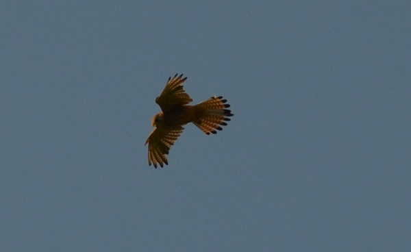 Im Sommer sehe ich diesen Vogel selten. Vielleicht ist da die Nahrungskonkurrenz mit den anderen Greifvögeln zu groß. Die Milane sind deutlich größer als die Falken, darum weichen die kleineren Räuber vermutlich in andere Gebiete aus. Wenn die Milane im Herbst das Revier verlassen, wird der Turmfalke wieder sichtbar. Dann muss er sich nur noch mit dem Bussard rumärgern!