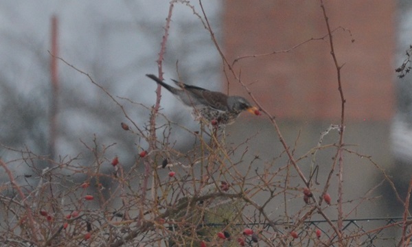 Im März wurde es noch einmal richtig eisig. Eine frierende Drossel auf einem Zaun am See ließ mich nahe heran kommen. Sie hatte entdeckt, dass noch ein paar kleine Hagebutten übrig waren. Leider sind die Bilder nicht so scharf, aber wegen der Originalität stelle ich sie vor.